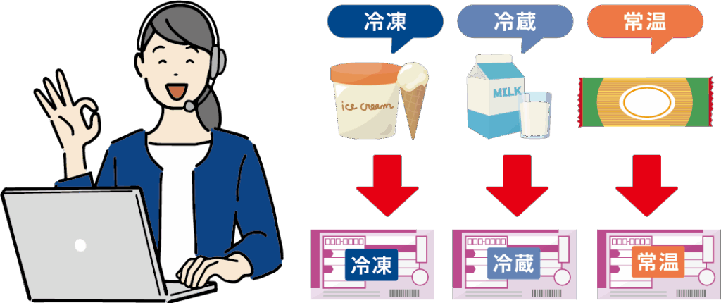 - 温度帯(常温・冷蔵・冷凍)の違い