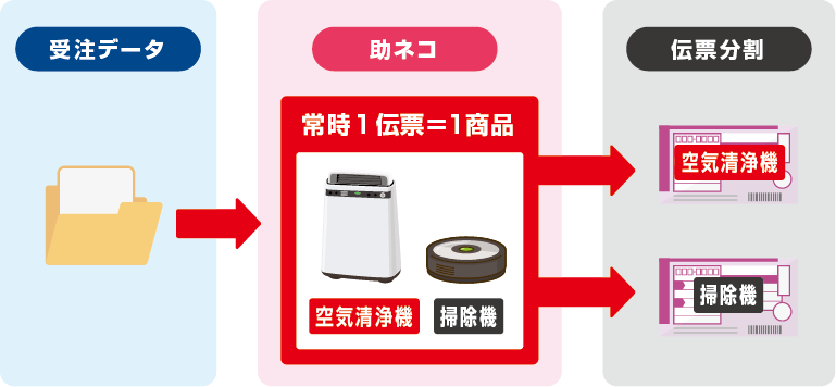 伝票自動分割機能は、助ネコ受注管理システムの機能のひとつのため、受注管理システムをご利用いただく必要がございます。