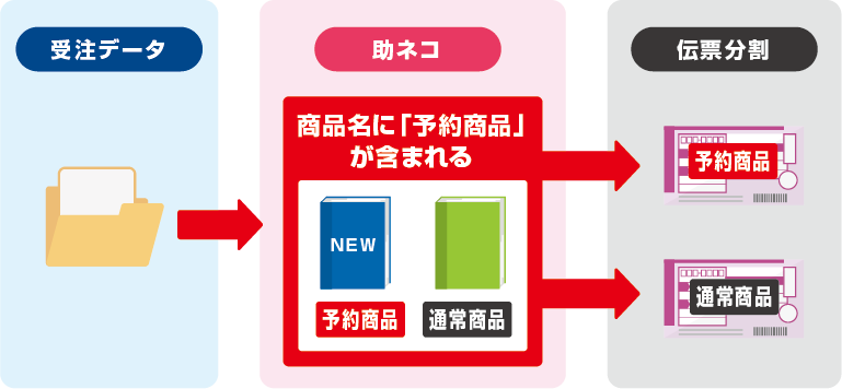 助ネコに受注データが取込まれた際、設定した条件に応じて伝票が自動分割されます。